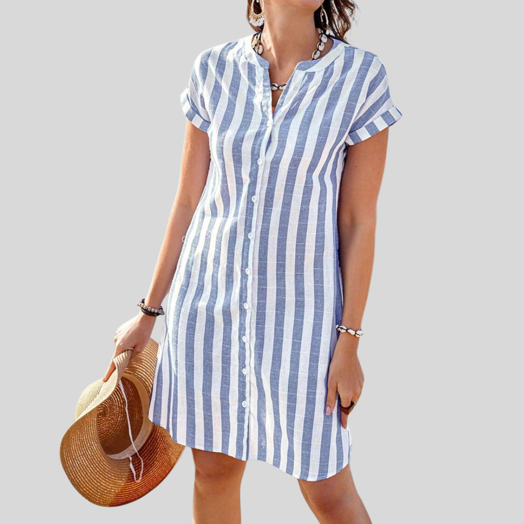 Ione is created for women who value elegance that feels natural and wearable. With its refined striped design and softly balanced silhouette, this shirt dress delivers a calm, confident look that works seamlessly from morning plans to evening strolls, offering polish without feeling formal or restrictive.